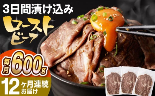 【全12回定期便】【ソース付き】 ローストビーフ 600g(200g×3袋) 長与町/長崎なかみ屋本舗 [EAD043] 冷凍 スライス たれ ソース
