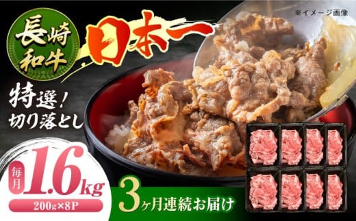 【3回定期便】長崎和牛 特選切り落とし A4-A5 約1.6kg(200g×8パック) 長与町/meat shop FUKU [ECS022 ] 切り落とし きりおとし 牛肉 1kg すきやき 国産 和牛 A4 A5 国産切り落とし すき焼き 冷凍 小分け 定期便 定期 ていきびん