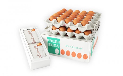 鮮度のよい吉原玉子直売所の玉子と、その玉子を使ったしっとりしたカステラのセット