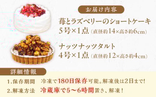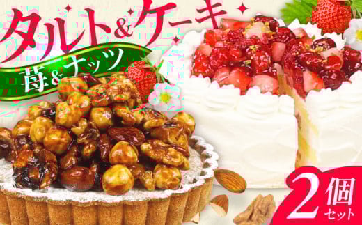 【11月末まで!クリスマスに間に合う!】ケーキ・タルトセット (ナッツタルト 苺のショートケーキ) スイーツ けーき 洋菓子 いちご アーモンド クリーム 冷凍 クリスマス パーティ デコレーション 広川町 / イートウェル株式会社 [AFAK240]