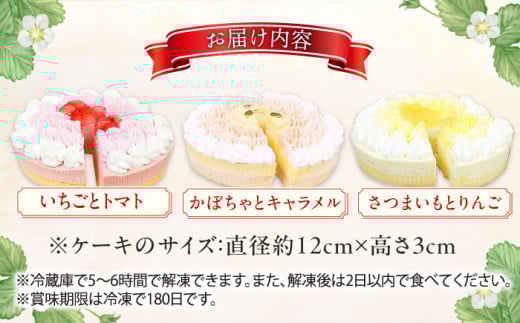 【11月末まで!クリスマスに間に合う!】野菜スイーツの名店 ポタジエ監修 ケーキ3個セット スイーツ けーき 洋菓子 さついまいも かぼちゃ 冷凍 クリスマス 広川町 / イートウェル株式会社 [AFAK278]