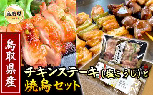 A25-024 (※お歳暮専用※)鳥取のチキンステーキ(塩こうじ)と焼鳥セット 鳥取県 おすすめ チキンステーキ 焼鳥盛合せ もも ももねぎま 身皮 砂肝 鳥取県産