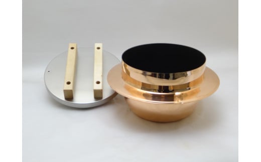 材質:銅(内面フッ素樹脂加工)、蓋:ステンレス、蓋取っ手:天然木