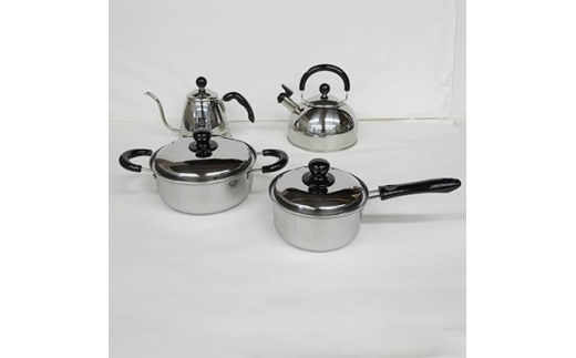 ステンレス製 鍋(片手/両手)・ケトル・コーヒーポットの4点セット FCSF020024