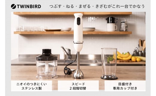 ツインバード チョッパー付 ハンディーブレンダー (KC-4833W ホワイト) ブレンダー 家電