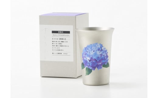 16℃以下の液体を入れると表面の紫陽花のイラストが色づく酒器です。