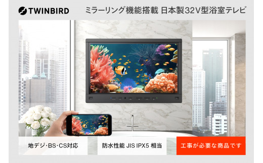 【別途設置工事の手配必要】ツインバード 32V型浴室テレビ(VB-BB321B)
