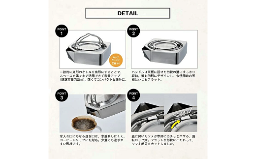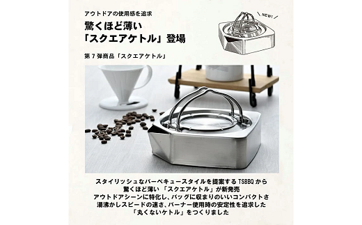 [TSBBQ] スクエアケトル 700ml【 オール熱源対応 角型 オールステンレス製 コンパクト アウトドア用品 キャンプ用品 燕三条 キッチン用品 調理器具 キッチングッズ 】 FC027012