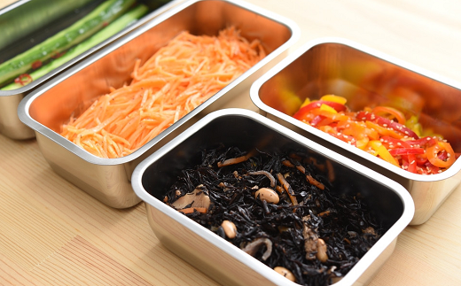 1/4サイズ角バット本体: 幅16×奥行11×高さ6cm、重量/115g、容量/700cc、材料/ステンレス