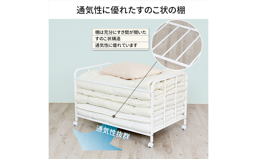 布団収納ラック ロータイプ1段 (キャスター付)【YO-914】【 布団 ふとん収納 ウォークインクローゼット 整理棚 押し入れ収納 シンプル 燕三条製 [川口工器] 】 FC043008