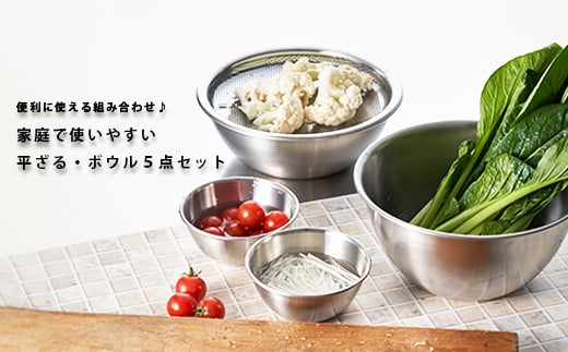 ステンレスボウル21cm (深型・浅型) & パンチング平ザル21cm & 二合ミニボウル2個 セット (つや消し) FC016043