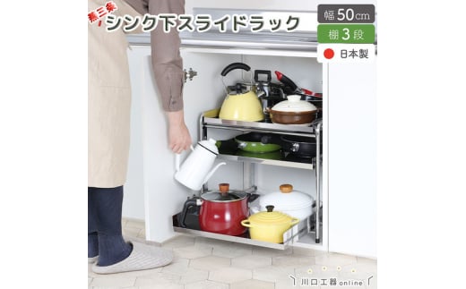 YK-06 シンク下収納 スライドラック 棚3段 幅50cm FC034017