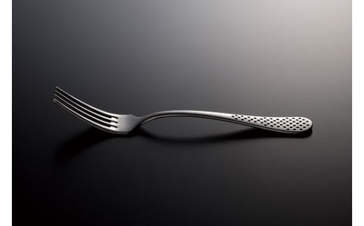 テーブルフォークも同様に持ち手にはGLOBALらしいドット柄が施されています。4つ叉のため、にんじんのグラッセなどの付け合わせの野菜や、コーンなど細かな食材も取りやすいです。