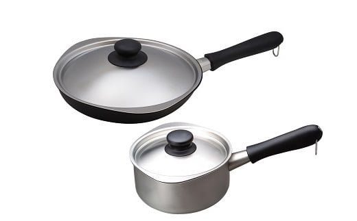 マグマプレート加工フライパン25cm (蓋付き) & ステンレス製ミルクパン14cm (蓋付き) FC022096