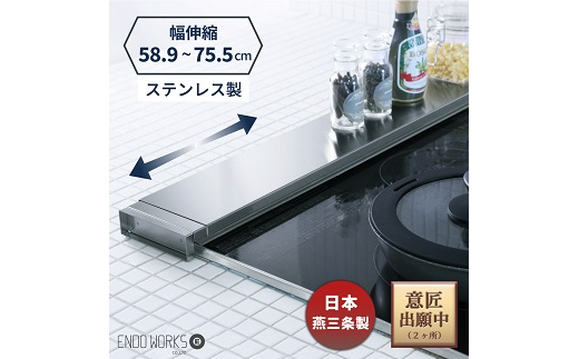 伸縮(58.9~75.5cm)&薄型&他にはないデザインでコンロにピッタリフィット。