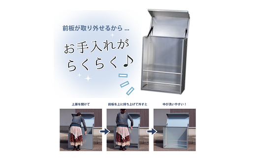 弊社のダストボックスは、日差しに強いZAM鋼板を使用しているため十分な耐久性を誇ります。