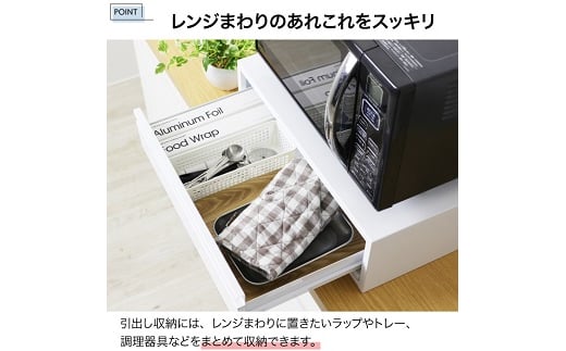 レンジやキッチン家電下に設置するだけで「引出し+スライド棚」でレンジ調理の効率アップ!