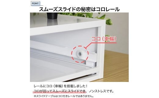 引出しには、コロ付きスライドレールを搭載、スムーズに引き出せます。