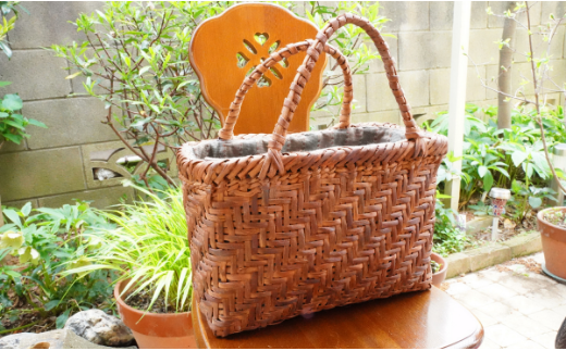 その山ぶどうの蔓で編むバッグは、使うほどに艶が出て高級感を増し、