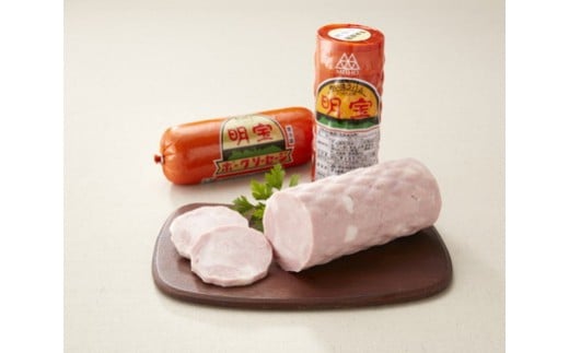 郡上を代表する名産品の一つ・明宝ハムと、ピリ辛ポークソーセージのセット。