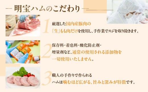 【明宝ハム】豚肉、食塩、砂糖、香辛料、調味料(アミノ酸等)、リン酸塩(Na、K)、発色剤(亜硝酸Na)