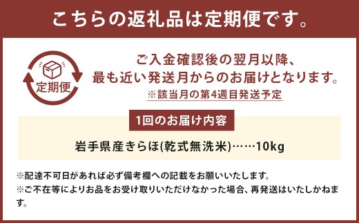 【6回定期便】 甘くてもっちり 岩手県産 きらほ 乾式無洗米 10kg (合計:60kg) 【2025年11月下旬~2026年9月下旬発送予定】 / 三右エ門 こだわりのお米 米 お米 こめ コメ ごはん ご飯 白米 ふるさと納税米 ブランド米 低アミロース米 岩手県 二戸市 常温