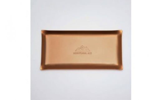 ペントレーとして、会計時のキャッシュトレーとして。アイデア次第で様々な用途に使える、サイズ感のあるアルミ製トレーです。中央にASHIKAGA AIDロゴが刻印されたデザイン、ブロンズゴールドの色合いが高級感 を演出してくれます。