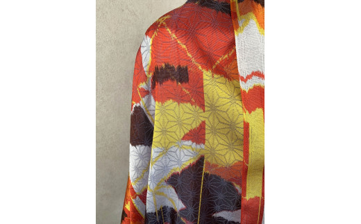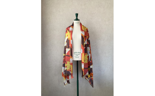 7. ◎海外要人向け贈呈品選出 足利銘仙(ほぐし織り)シルクストール ART.Techno-RJ【海外要人向け 贈呈品 羽織り 大判 シルク ストール 栃木県 足利市 】 F7Z-312