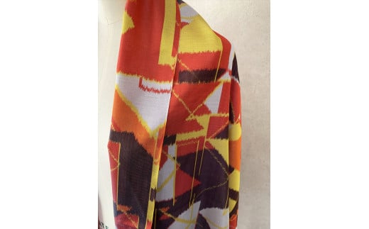 7. ◎海外要人向け贈呈品選出 足利銘仙(ほぐし織り)シルクストール ART.Techno-R【海外要人向け 贈呈品 羽織り 大判 シルク ストール 栃木県 足利市 】 F7Z-313