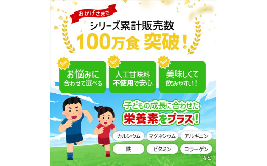 5)骨の材料となるカルシウム・マグネシウムをバランスよく配合。そのほか背が伸びる時期に大切な亜鉛、鉄分、ビタミンB群、ビタミンDなどもバランスよく配合しています!