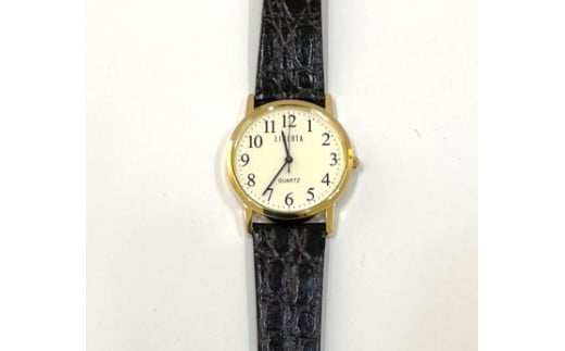 【バンド】カラー:ブラック系、材質:牛革(型押ワニ) 中留:美錠