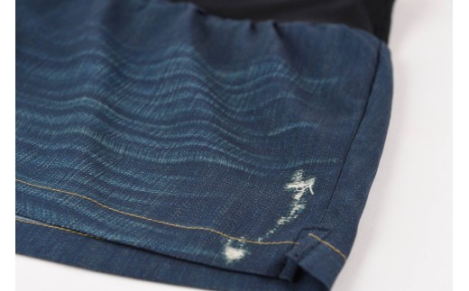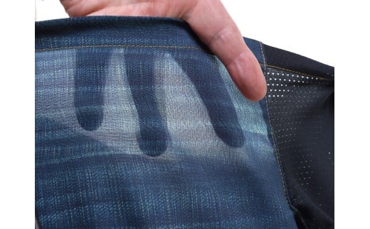特殊プリント技術で昇華プリントのような熱圧で生地本来の風合いが損なうことなく、デニムのダメージ・ステッチ・ヒゲといった"本物のデニム"の質感をリアルに再現。