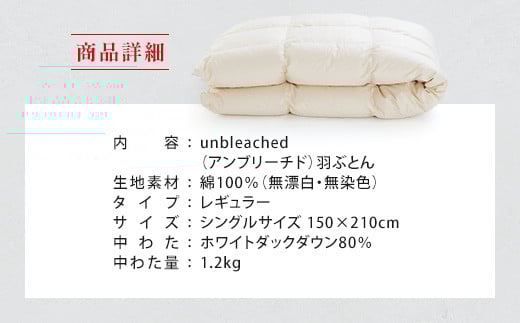 IWATA unbleached 羽ぶとん (レギュラー) シングルサイズ 羽毛布団 羽毛ふとん ホワイトダック ダウン AA058