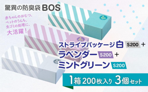 驚異の防臭袋BOS ストライプパッケージ白 S200+ラベンダー S200+ミントグリーン S200(3個セット)