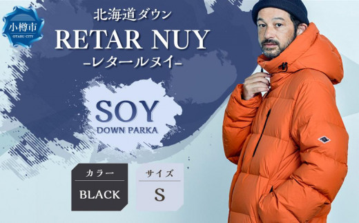 <UNISEX>北海道ダウン:RETAR NUY/レタールヌイ[SOY/ソイ]DOWN PARKA [BLACK/Sサイズ]