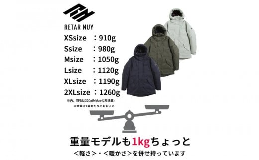 RETAR NUYの中でも「最上位」の暖かさを誇るモデル。