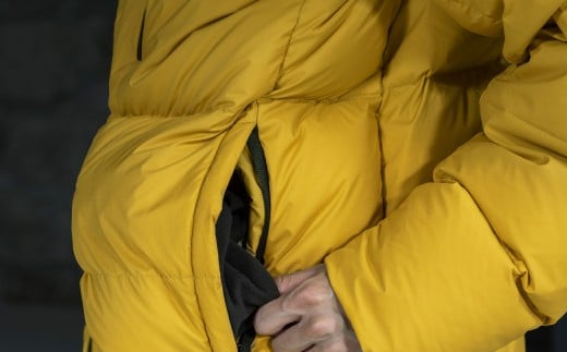 ハンドウォームポケットとしての機能も持ち合わせており、北国では欠かせない仕様。手袋なしでも充分です。