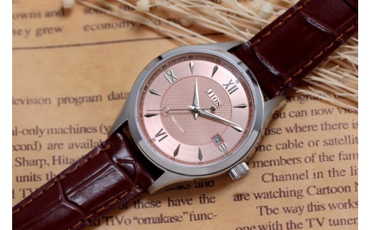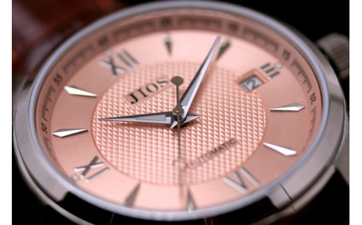 JIOS SEIRAN 日本製 自動巻き腕時計 メンズ 男性用 革ベルト ブランド ドレスウォッチ ジオス ビワマスサーモン × シルバー針 クロコ型押しベルト(ブラウン)