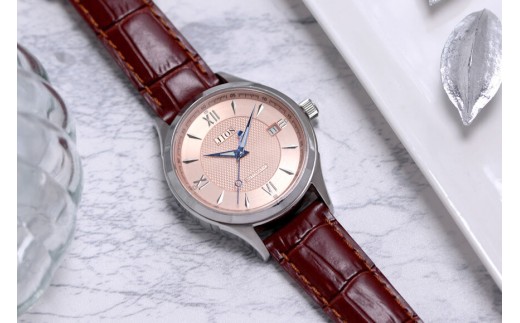 JIOS SEIRAN 日本製 自動巻き腕時計 メンズ 男性用 革ベルト ブランド ドレスウォッチ ジオス ビワマスサーモン × 青針 クロコ型押しベルト(ブラウン)