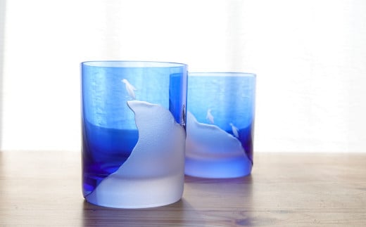 丁寧に手で彫られた、かわいらしいペンギンの切子グラス