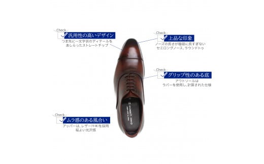 つま先に一文字状のディテールをあしらったストレートチップ。