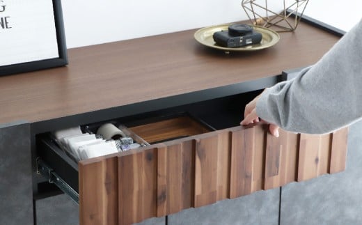 細部に渡る美しさを追求したモダンな空間作りに欠かせない意匠性で、空間をワンランク上の贅沢な返礼品です。アカシア材の凹凸やコンクリ調の前板のリアルな質感が魅力です。