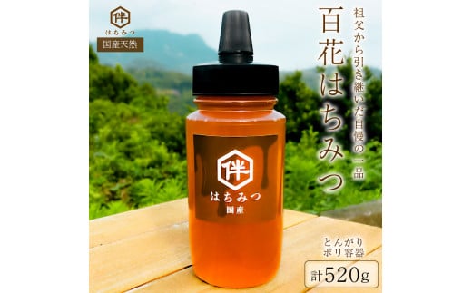 【国産・100%天然】百花はちみつ(520g・とんがりポリ容器)祖父から引き継いだ自慢の一品 mi0075-0003