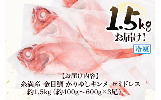 糸満産 金目鯛 かりゆしキンメ セミドレス 約 1.5kg (約400g~600g×3尾) 鱗と内臓処理済 キンメダイ タイ たい 鯛 真空 冷凍 長期保存 取り寄せ グルメ 加工品 海の幸 魚 さかな 沖縄 糸満 水揚げ 急速冷凍 鮮魚 丸新水産 沖縄県 糸満市