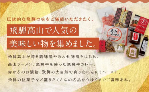 《飛騨の味》たっぷり味覚堪能セット こうじ味噌 醤油 漬物 飛騨牛カレー 高山ラーメン | 加工品 詰合せ セット らーめん カレー 飛騨高山 産業振興協会 LG014