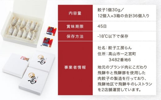飛騨牛&飛騨豚 冷凍餃子食べくらべ3箱セット(にんにく味・しょうが味・飛騨豚 各1箱)| 餃子の合計はたっぷり36個! おいしく焼ける調理説明書付き 餃子 飛騨牛 豚 おいしい 簡単 人気 飛騨高山 餃子工房らん NL001