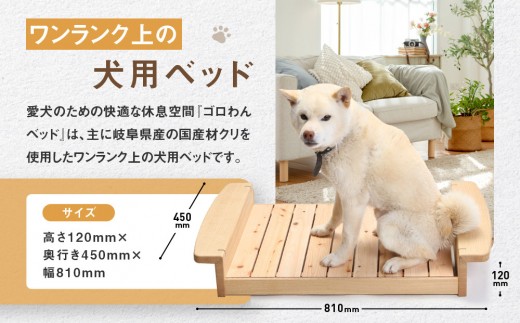 岐阜県の豊かな自然が育んだ国産材を使用した、愛犬のための特別なベッド「ゴロわんベッド」。