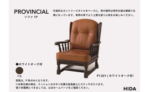 【飛騨の家具】HIDA PROVINCIAL 1人掛けソファ(P1301)|家具 アンティーク 椅子 革 リビング 木工製品 木工品 人気 おすすめ 新生活 一人暮らし 国産 飛騨産業 CG381