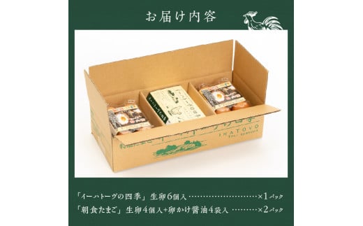 こだわりの卵「イーハトーヴの四季」と卵かけ醤油付き「朝食たまご」のセット 生卵4個入/卵かけ醤油4袋入×2パック たまご 玉子 生卵 鶏卵 タマゴ 甘味 旨味 卵かけご飯 TKG [J0013]