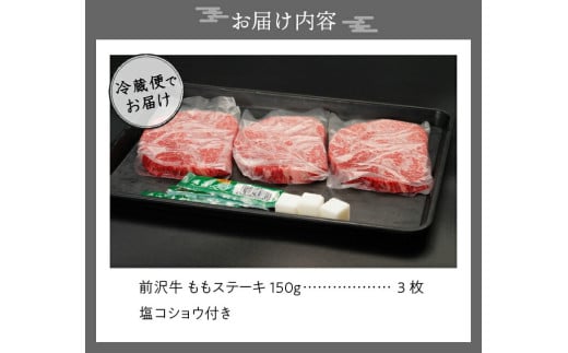 前沢牛 ももステーキ 150g×3枚 塩コショウ付 【冷蔵発送★お届け日指定をお忘れなく!】 ブランド牛 冷蔵 霜降り お肉 離島配送不可 [U0184]